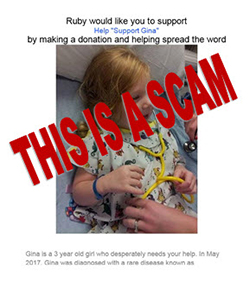 2. Never trust an online appeal for help from someone you don't personally know, If you receive an email, text, or social media message from anyone that you were not expecting don't respond to it. It may be a scam. If they know you they will contact you personally. If you see something from someone you know that is not typical, check with them directly before clicking on any links.