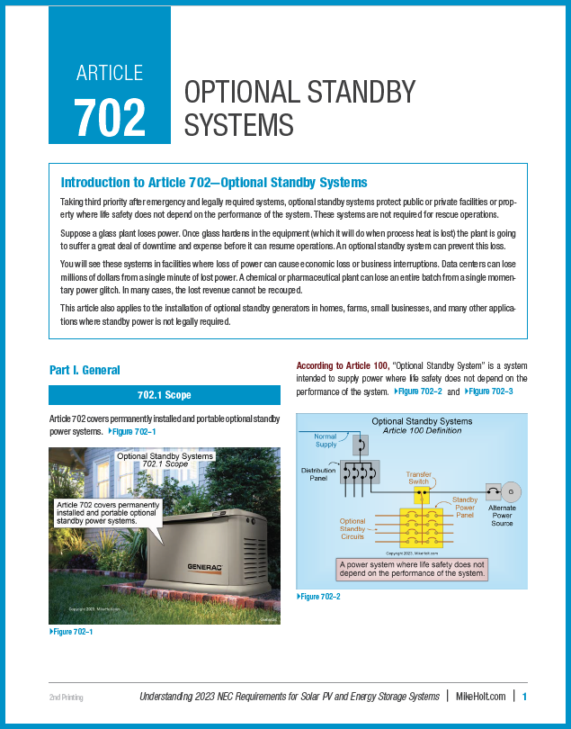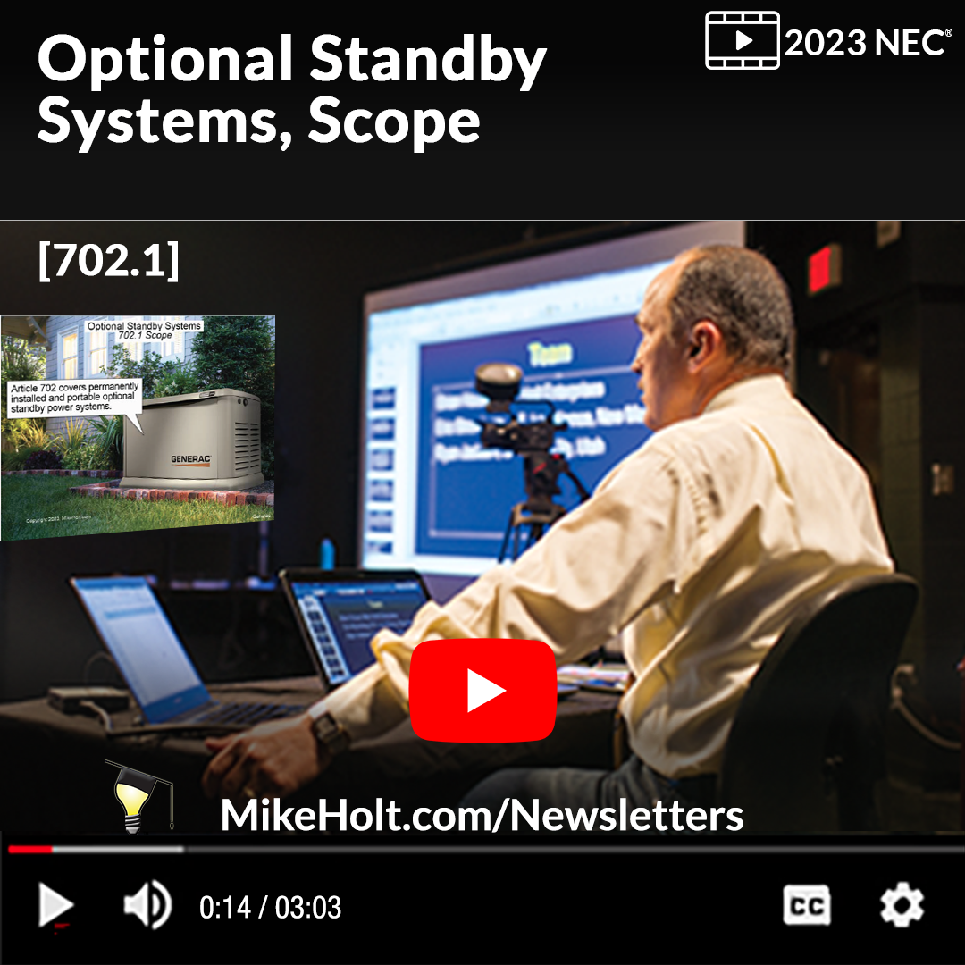 Learn what you need to know about what is covered in NEC Article 702 by reading the attached text and watching the video as Mike and a team of experts discuss how all of this is interconnected.