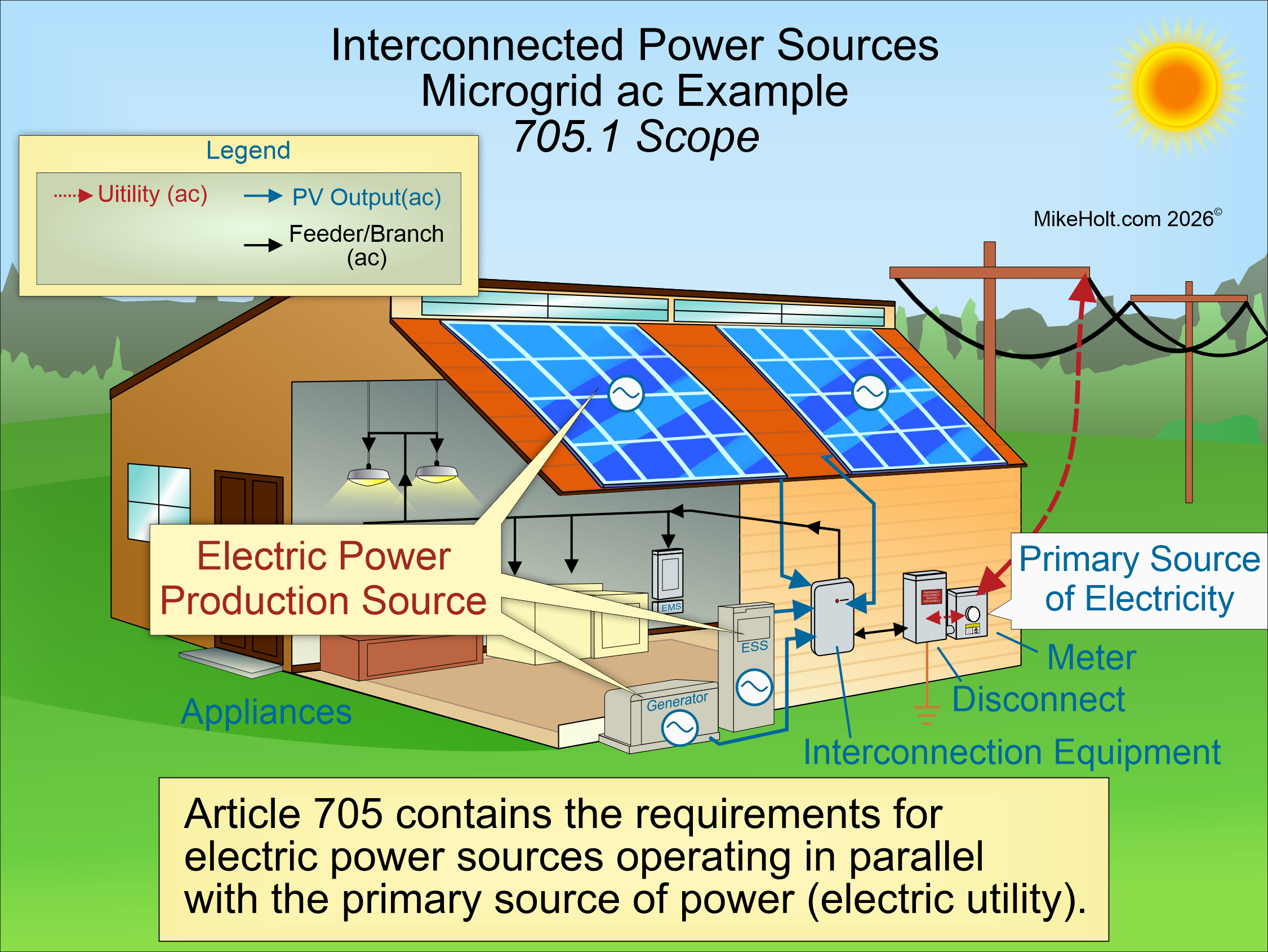 The NEC® rules that govern Solar PV systems are complex and span not only Articles 690 and 691 but almost every chapter in the NEC. With the recent introduction of Interconnected Power Production Systems and Bi-directional Current Flow, rules in other sections of the Code affect almost every location PV may be installed.
